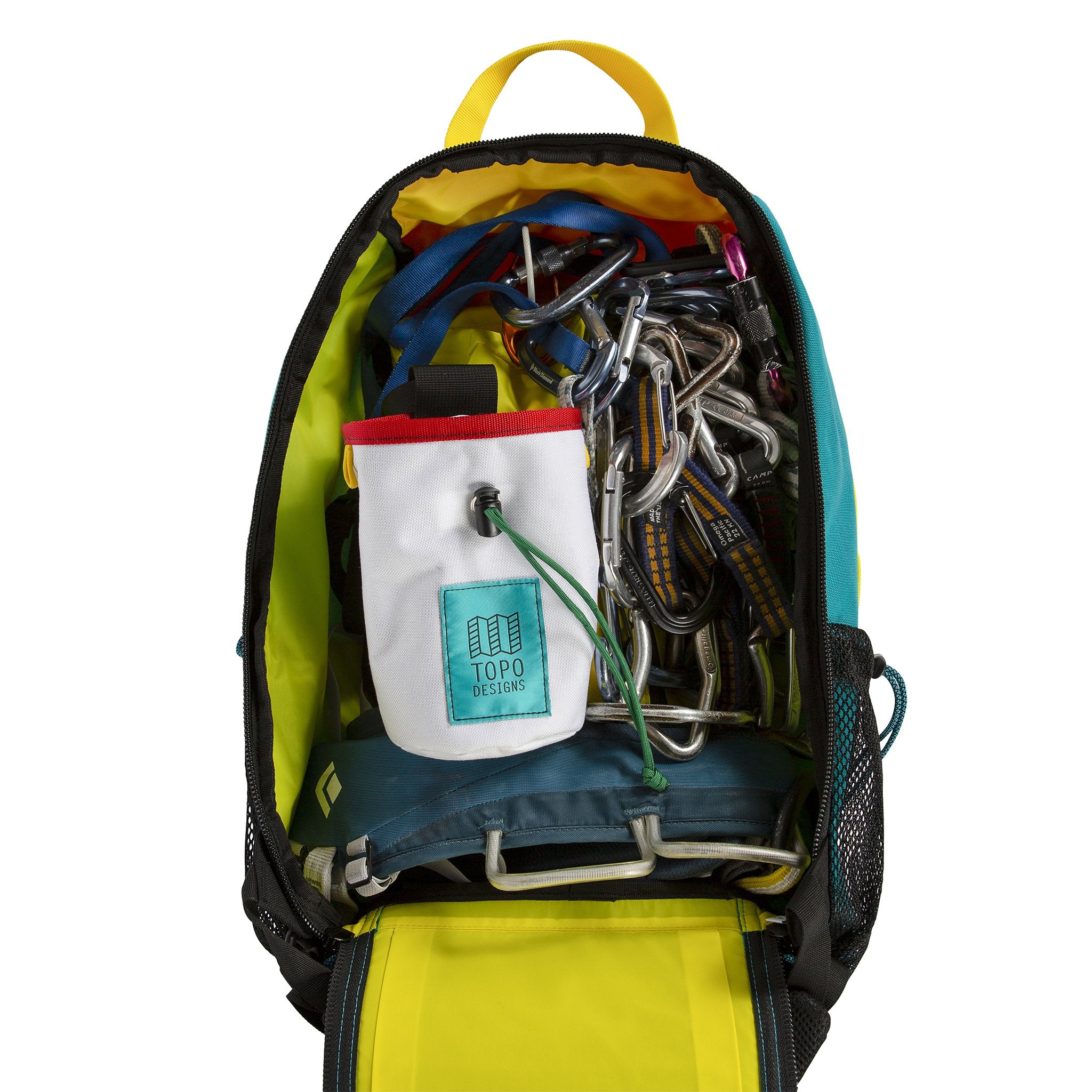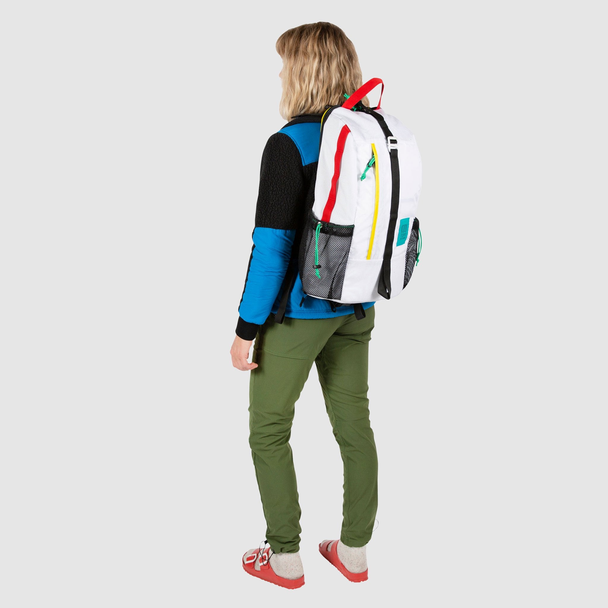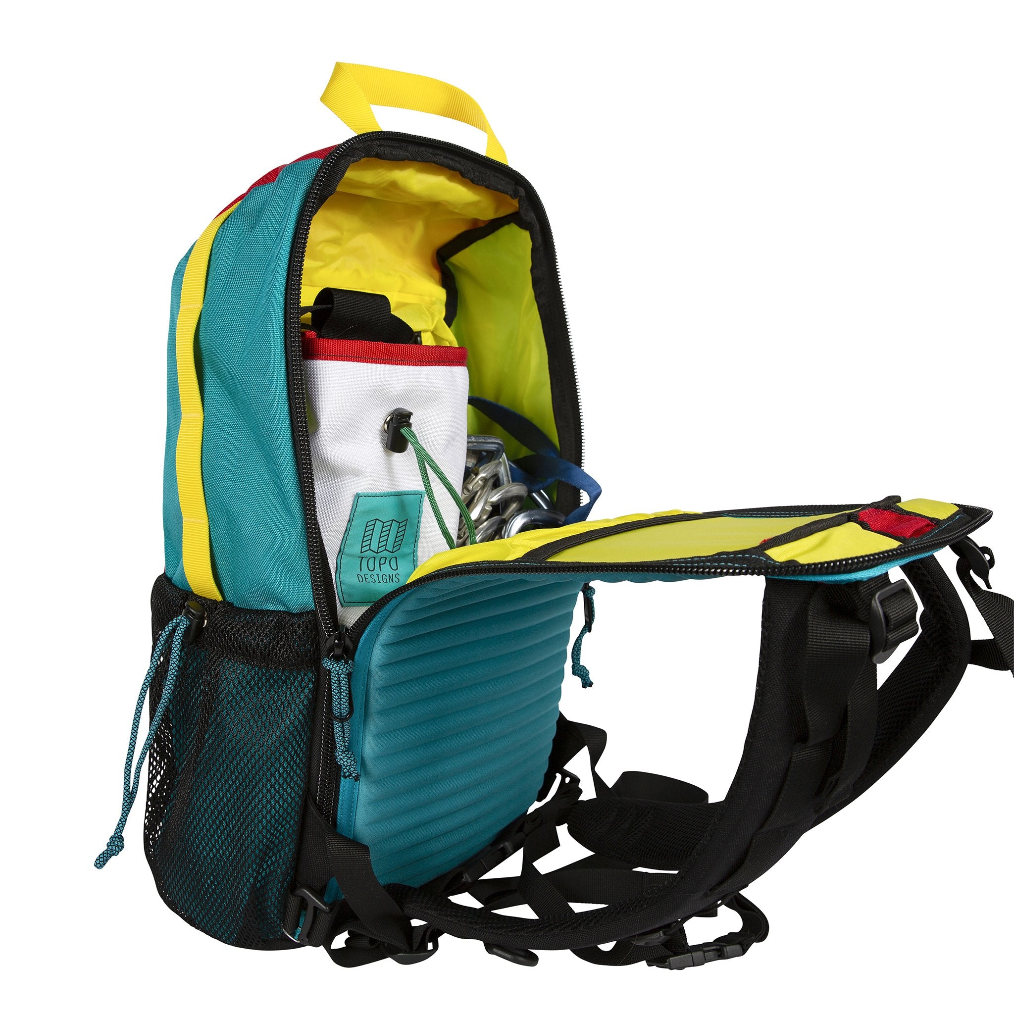 Built for climbing. The Backdrop Bag’s large main compartment features an internal dimensional pocket for stashing your shoes, and an internal sleeve on the padded back panel provides extra stash space for a water bladder or light layer. Side mesh water bottle pockets and a dual hydration/headphone port mean you can stay hydrated while on the move.