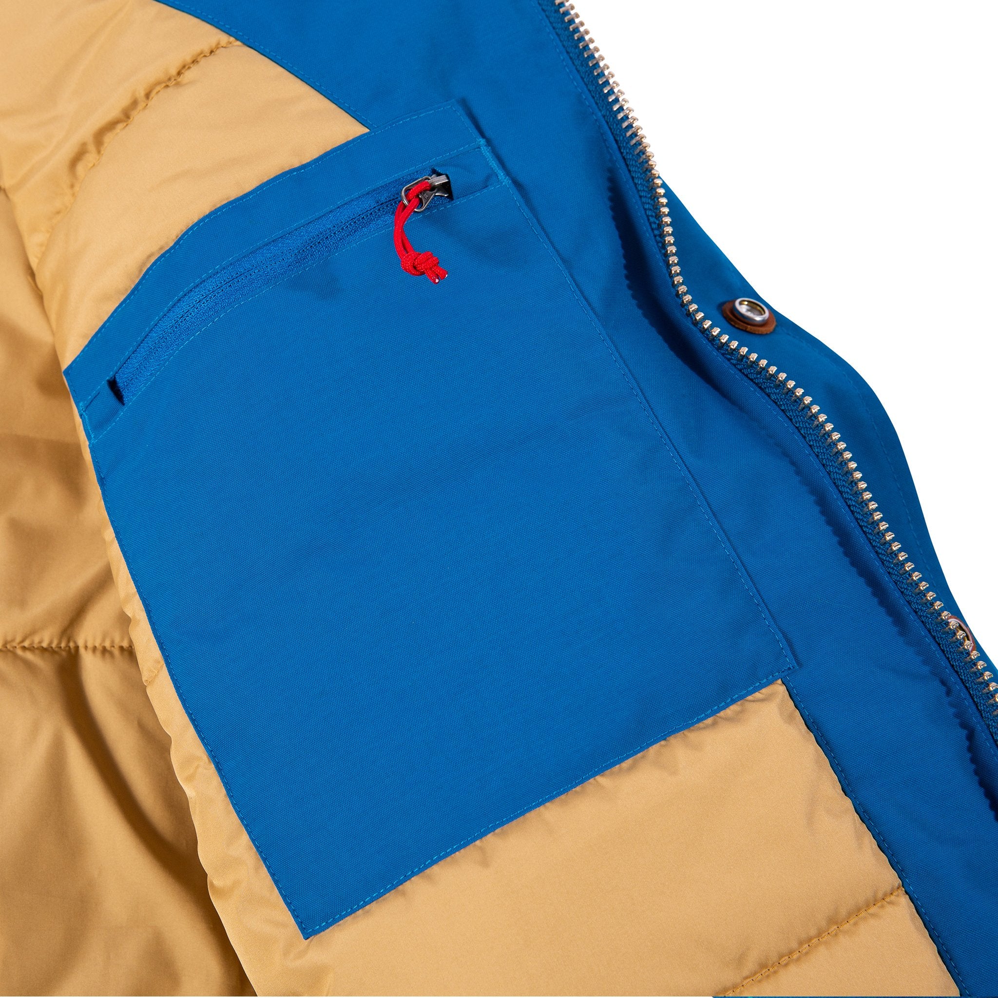 The Mountain Jacket is built from waterproof nylon oxford fabric with taped seams at critical points to keep you warm (and keep the elements at bay). Four dimensional cargo pockets allow plenty of room for you to stash your keys, gloves or phone. Each Mountain Jacket uses 27 post-consumer recycled plastic bottles in its PrimaLoft® Black Eco Insulation.
