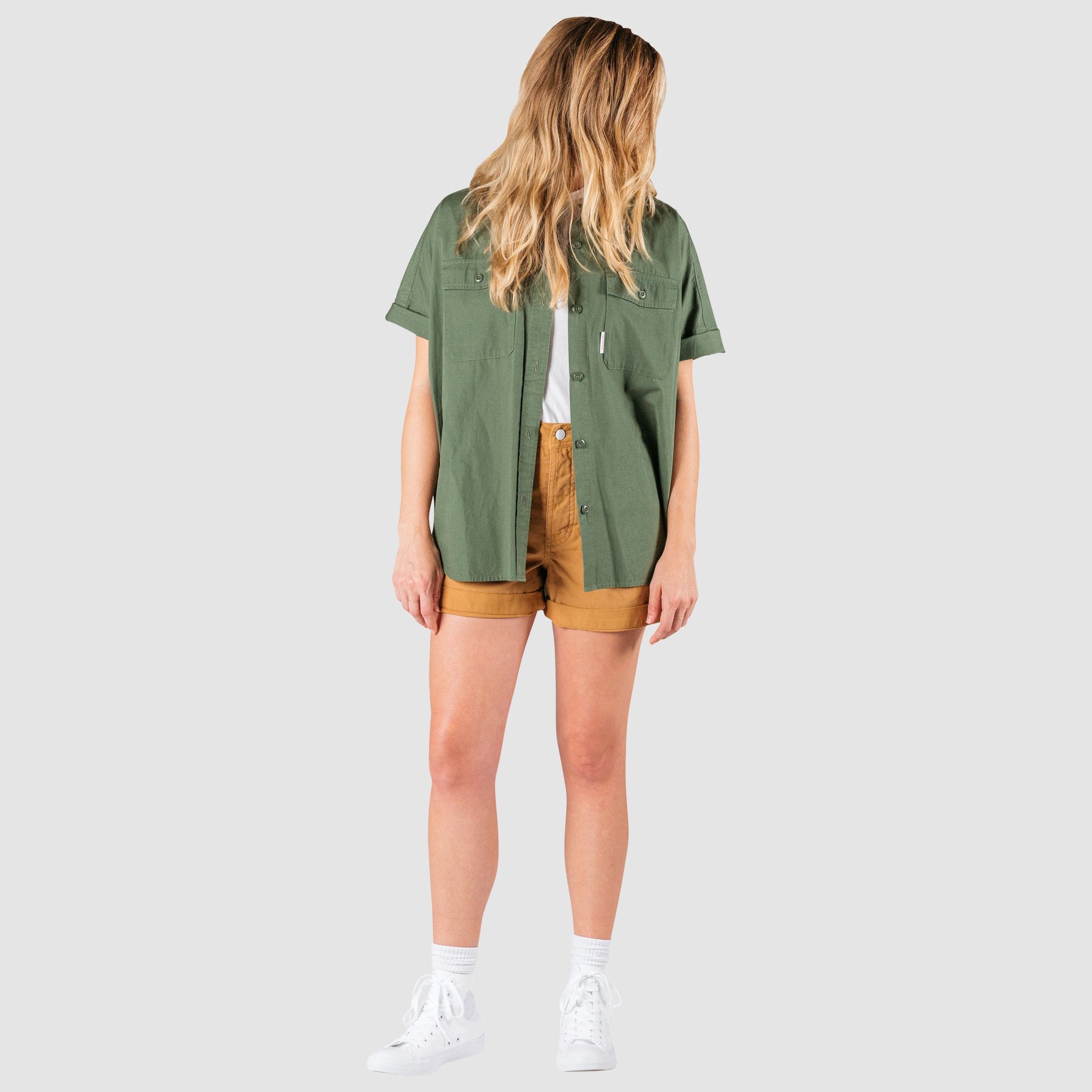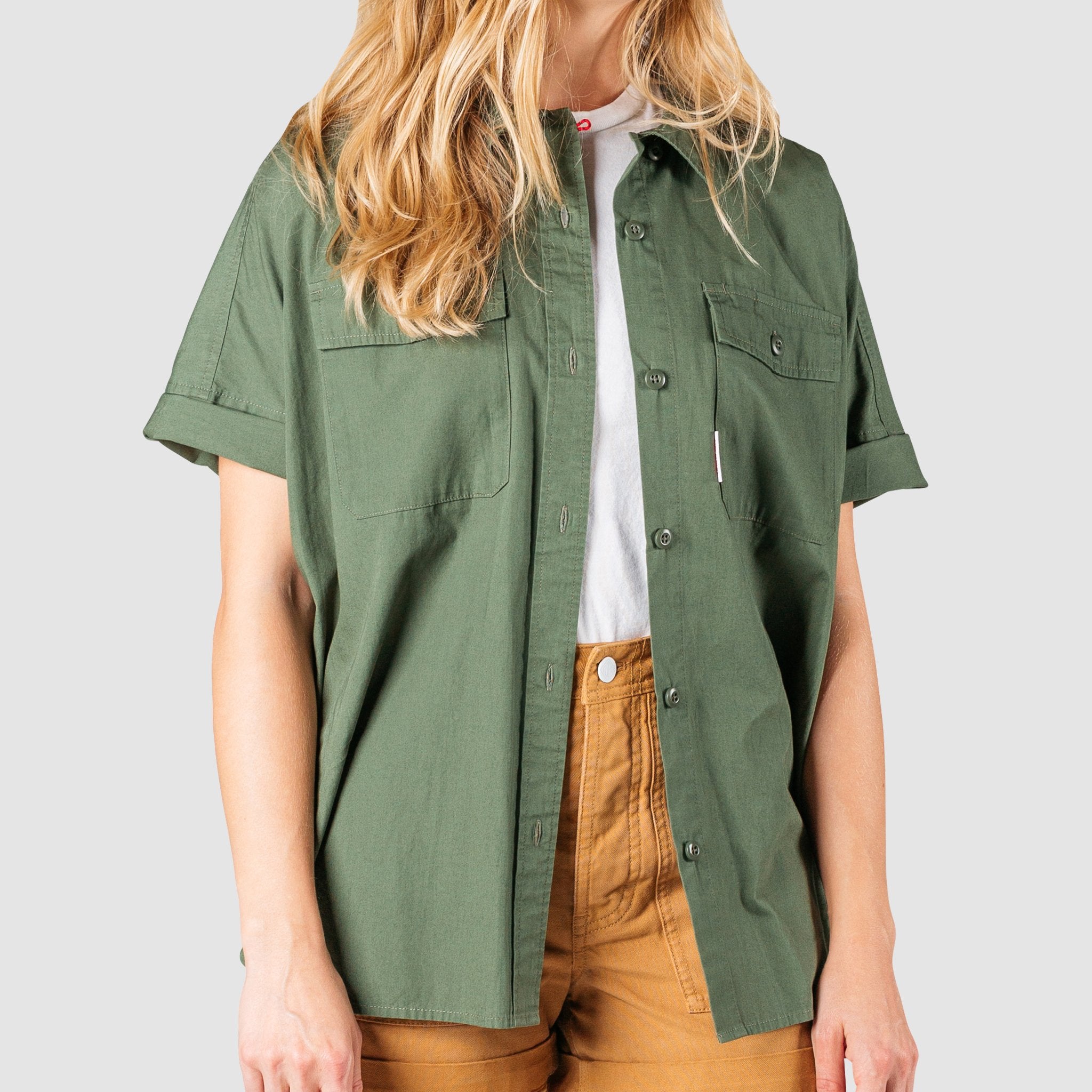 An everyday staple, our Short Sleeve Oversized Shirt is a versatile classic. Featuring a midweight cotton twill, flap pockets, oversized buttons and a set-in double-layered cuff on a kimono-style sleeve. Dress it up or down, inside or out.