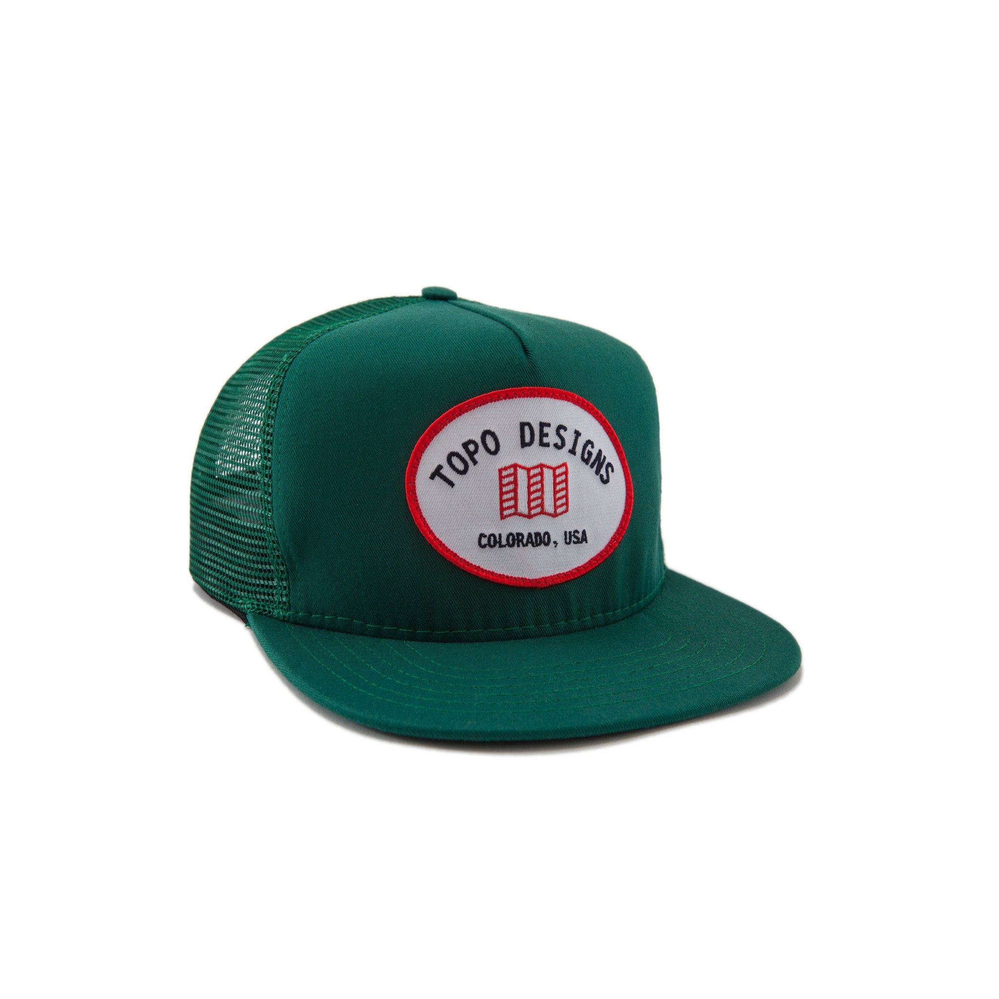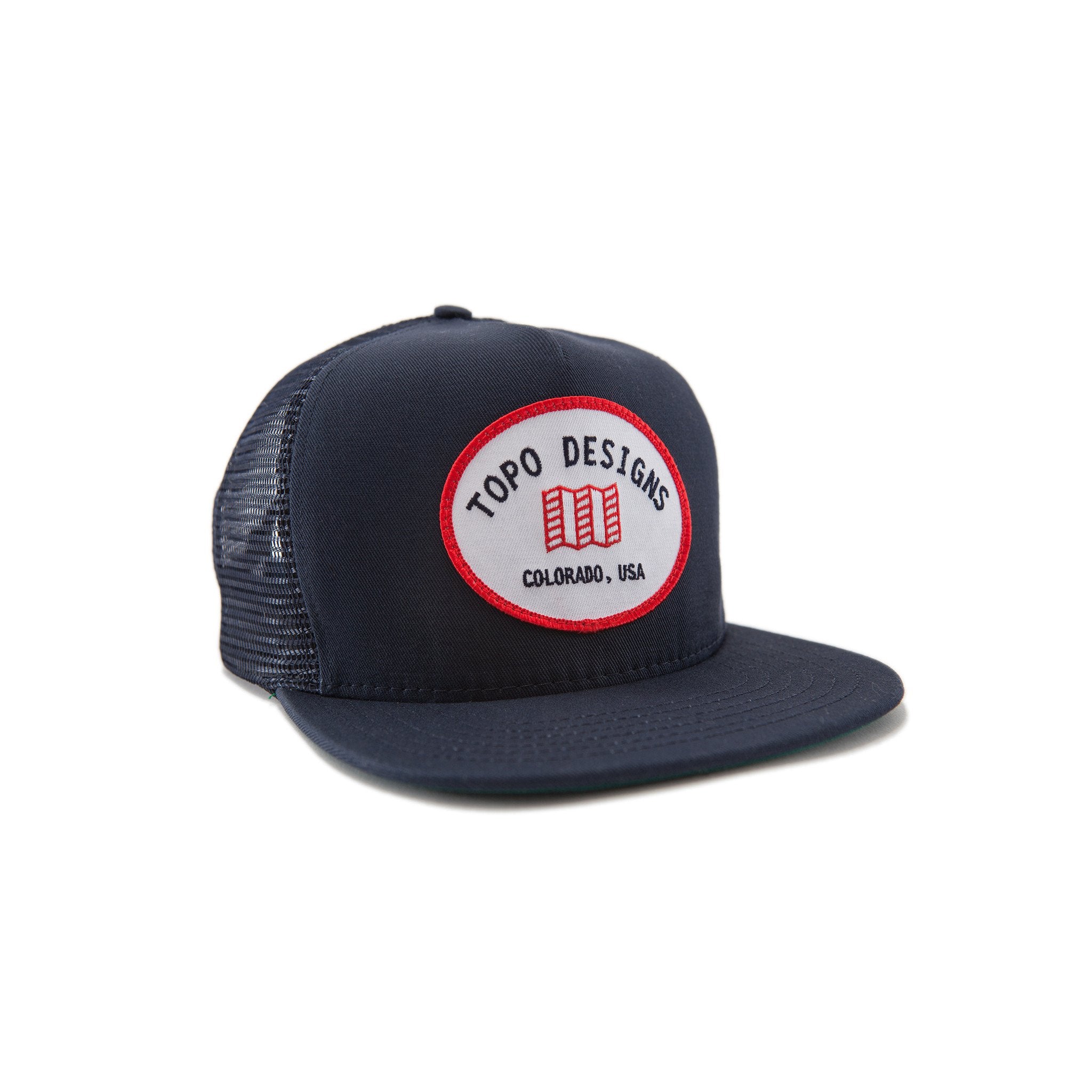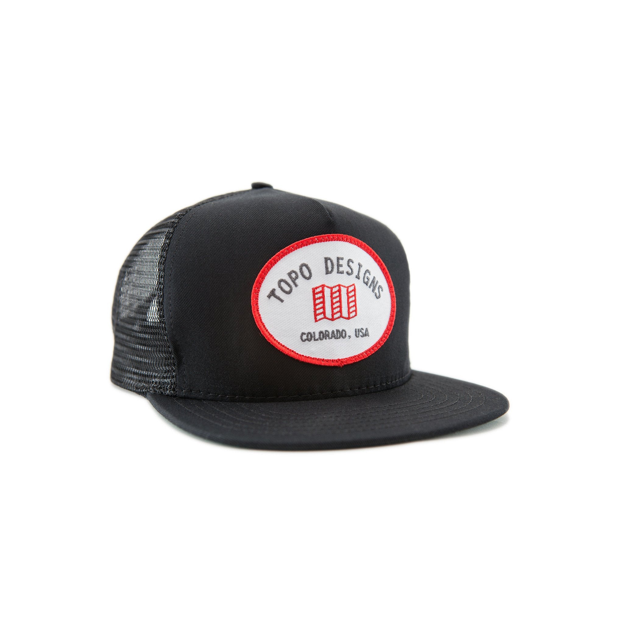 A classic, no-frills snapback cap with a Topo Designs patch front and center.