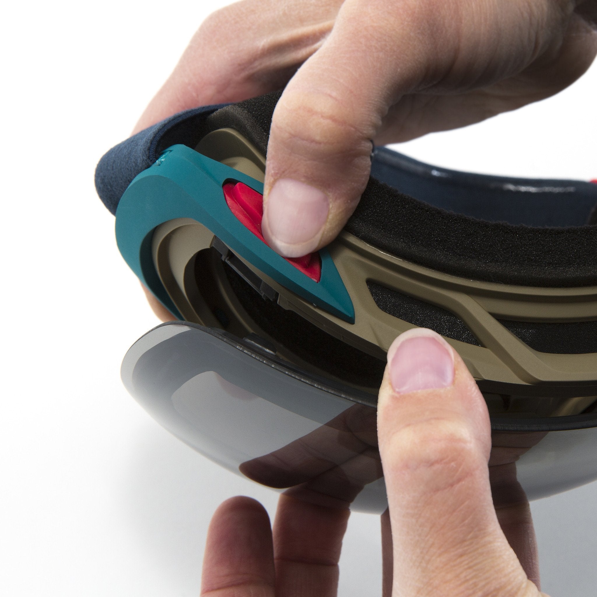 The breakthrough design of the all-new flagship EXV Contact goggle makes it easier than ever to adapt instantly to changing weather and light conditions. With a lens featuring self-locating magnets and a secure locking mechanism in its semi-frameless design, the Contact sets a new precedence in fast, accurate and secure goggle lens interchange. Snapshot Lens Interchange System allows the shutter button to be depressed for lens removal and effortless magnetic deployment of the new lens. The Contact offers an outstanding field of view, premium optics with Lenses By ZEISS and detailed finishing. Every pair of Contacts includes two lenses (a full-sun or all-conditions lens and a low-light lens), an ergonomic protective goggle frame and a spare lens case for travel and day trips on the mountain in your pocket or pack.