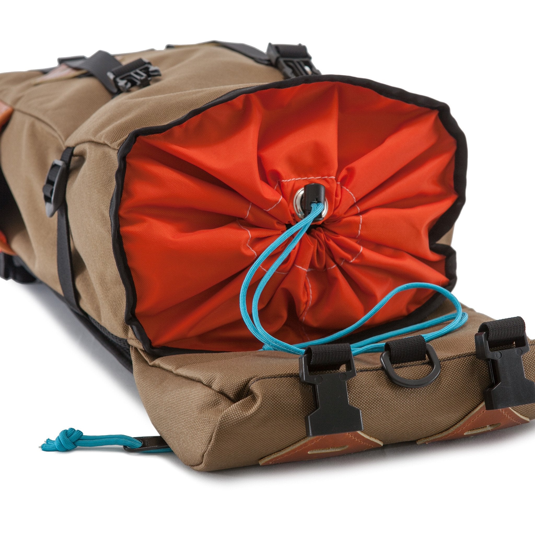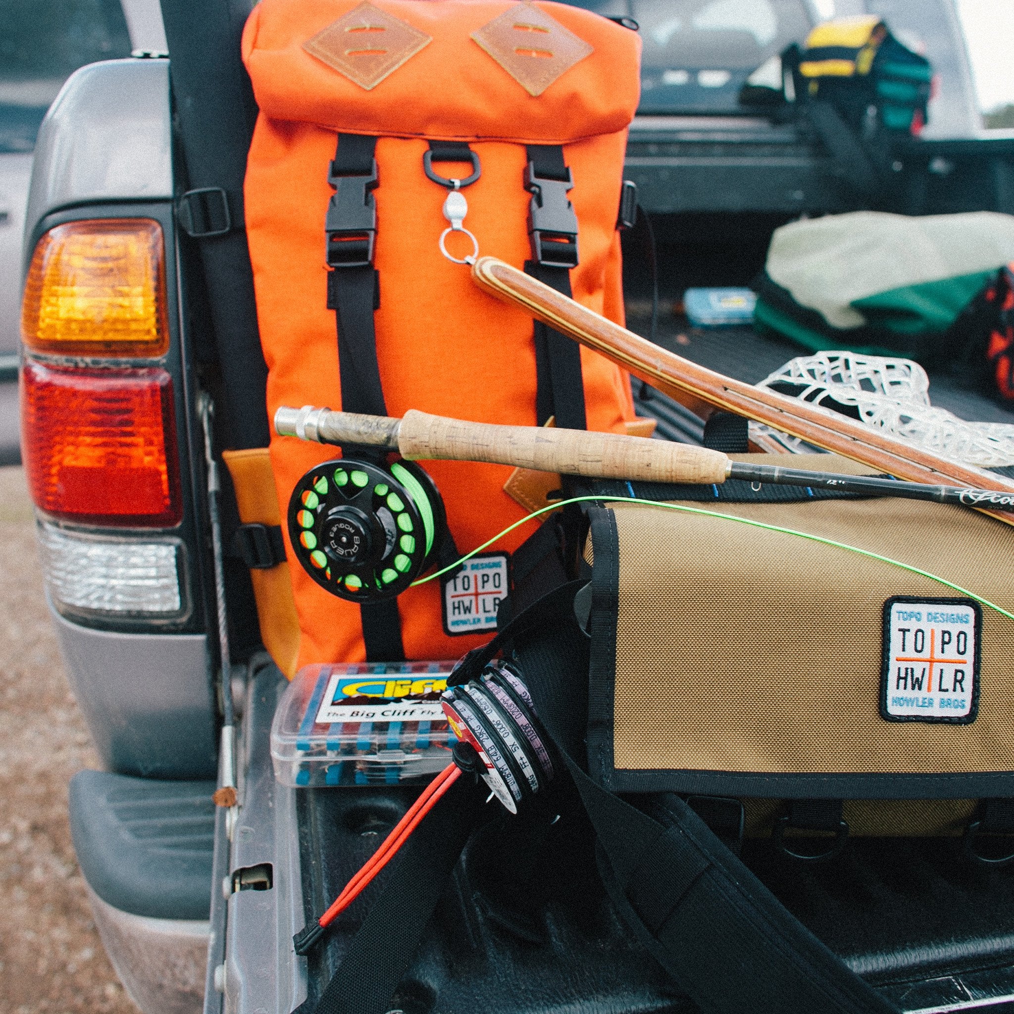 We teamed up with our friends at Howler Bros to create this special edition of our more compact Klettersack 15L. For this version we've modified our classic Klettersack to include a breathable mesh back, Horween leather lash tabs and base, d-ring for attaching a landing net and completed it with the recognizable Howler Brothers colors and co-branded patch. We took our classic Klettersack, kept all the durability, functionality and good looks and scaled it down to create a more compact every day hauler of this 15L version. It's an ideal travel companion, workmate or pack mule on the trail. We use 1000D Cordura® for the exterior and coated pack cloth for an entirely lined inner compartment. The Horween leather lash tabs are perfect for securing extra gear and the side pockets are ideal for storing water bottles or fly rods. We included an inner padded sleeve that can hold a hydration bladder or up to a 15" laptop.