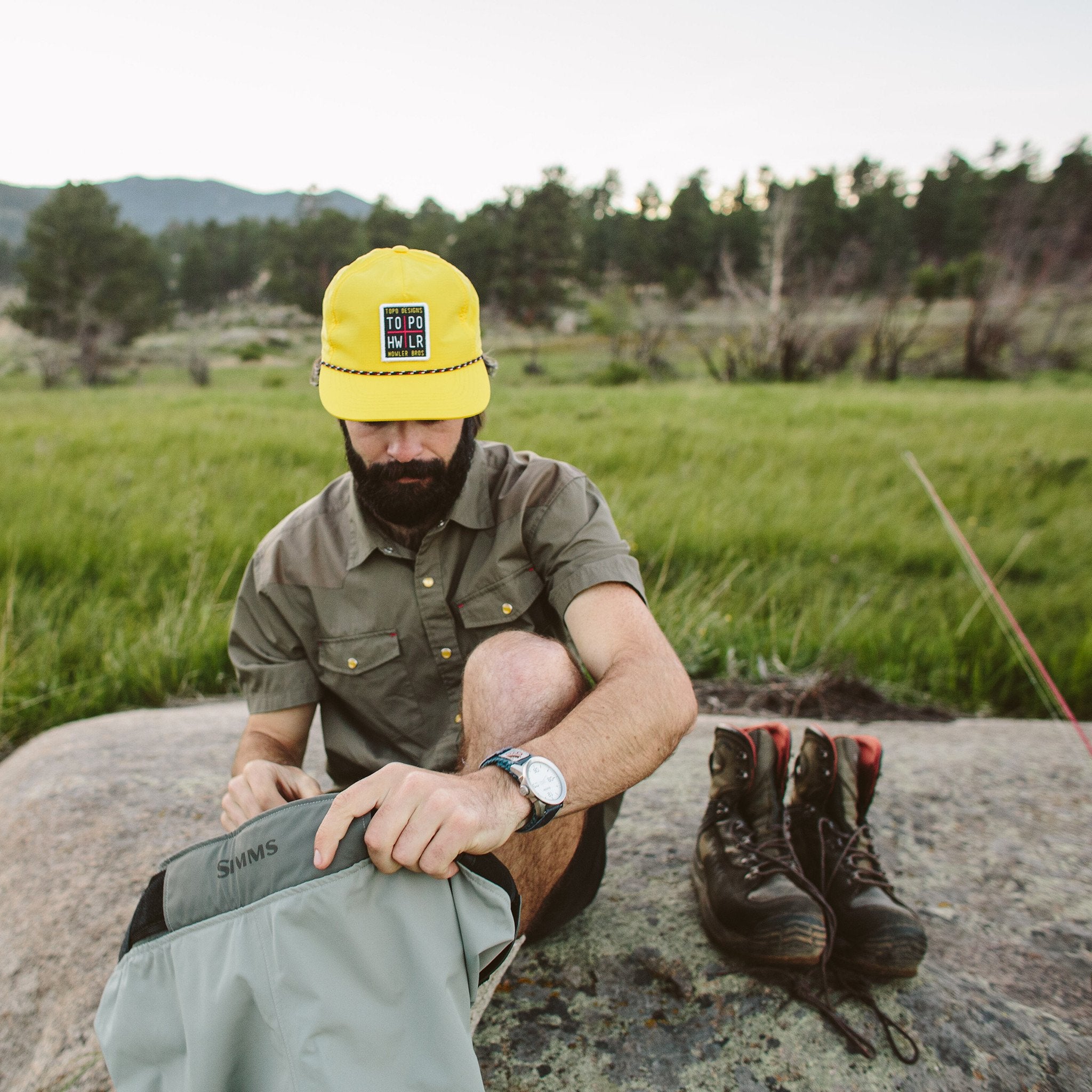This 5-panel hat features a Topo Designs x Howler Brothers embroidered patch and multicolor braided cord at visor. Rest assured you will stand out whether streamside or bellied up at the tavern.