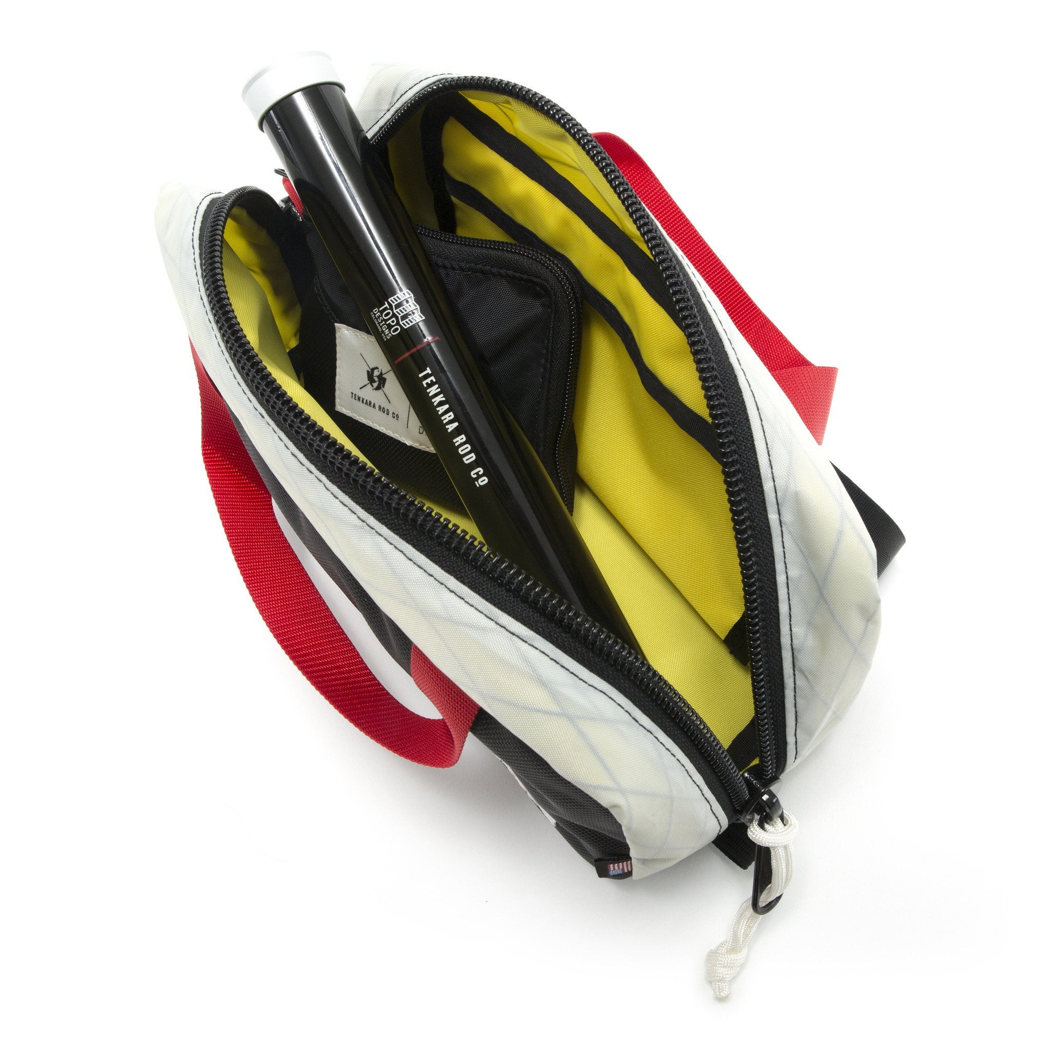 Our Minimal Hip Pack is the perfect small carrying companion when pockets aren't enough. The Minimal Hip Pack carries the Tenkara rod, flies, line, water bottle, wallet, snack, sunglasses and keys without covering your entire back. The X-Pac™ material boasts multiple layers, laminated together over a waterproof membrane. The X-Ply™ (diamond pattern) provides additional strength across the bias, traditionally the weakest part of the pack. The extra-long webbing belt allows for it to be carried at the waist or across your body.