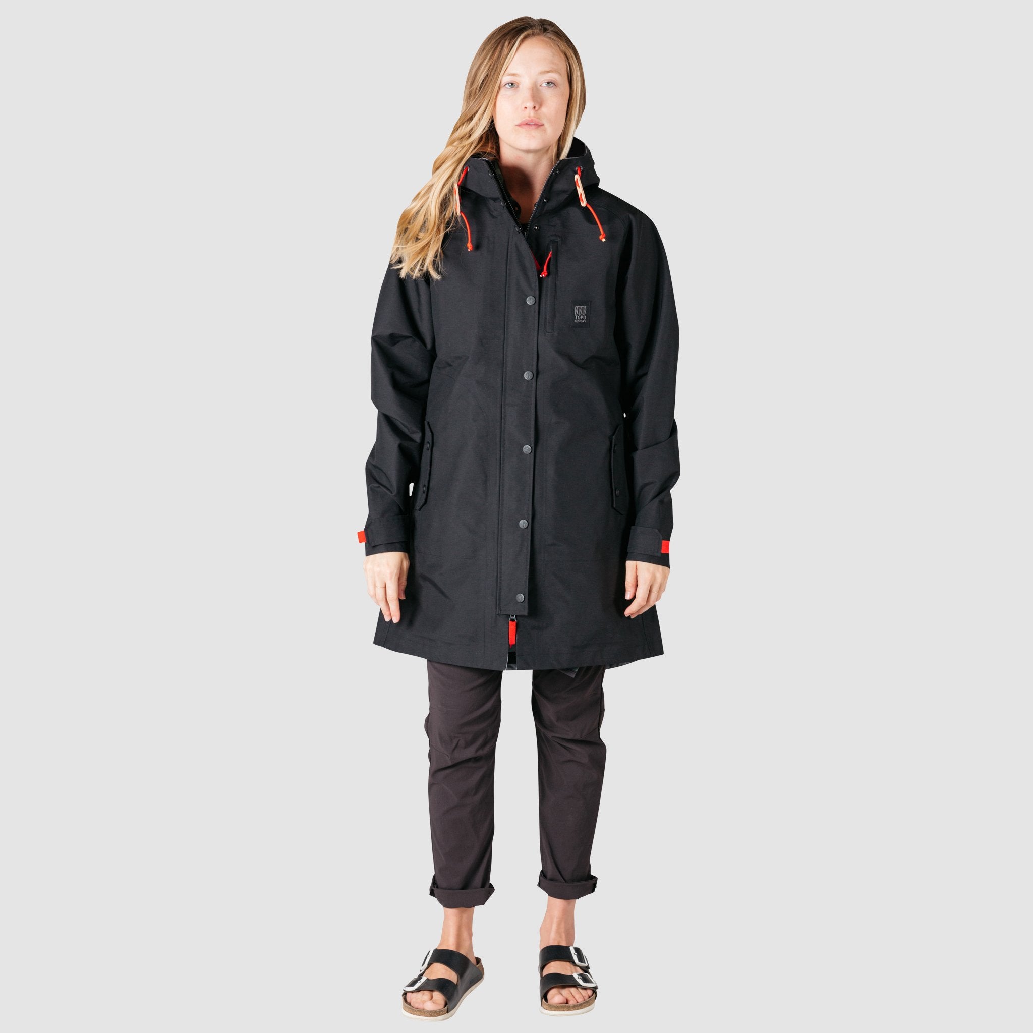 Brighten the forecast with our all-purpose outerwear piece. Wear this long rain coat over a suit for the morning commute downtown, or pair it with hiking boots for an afternoon trek on the trail.