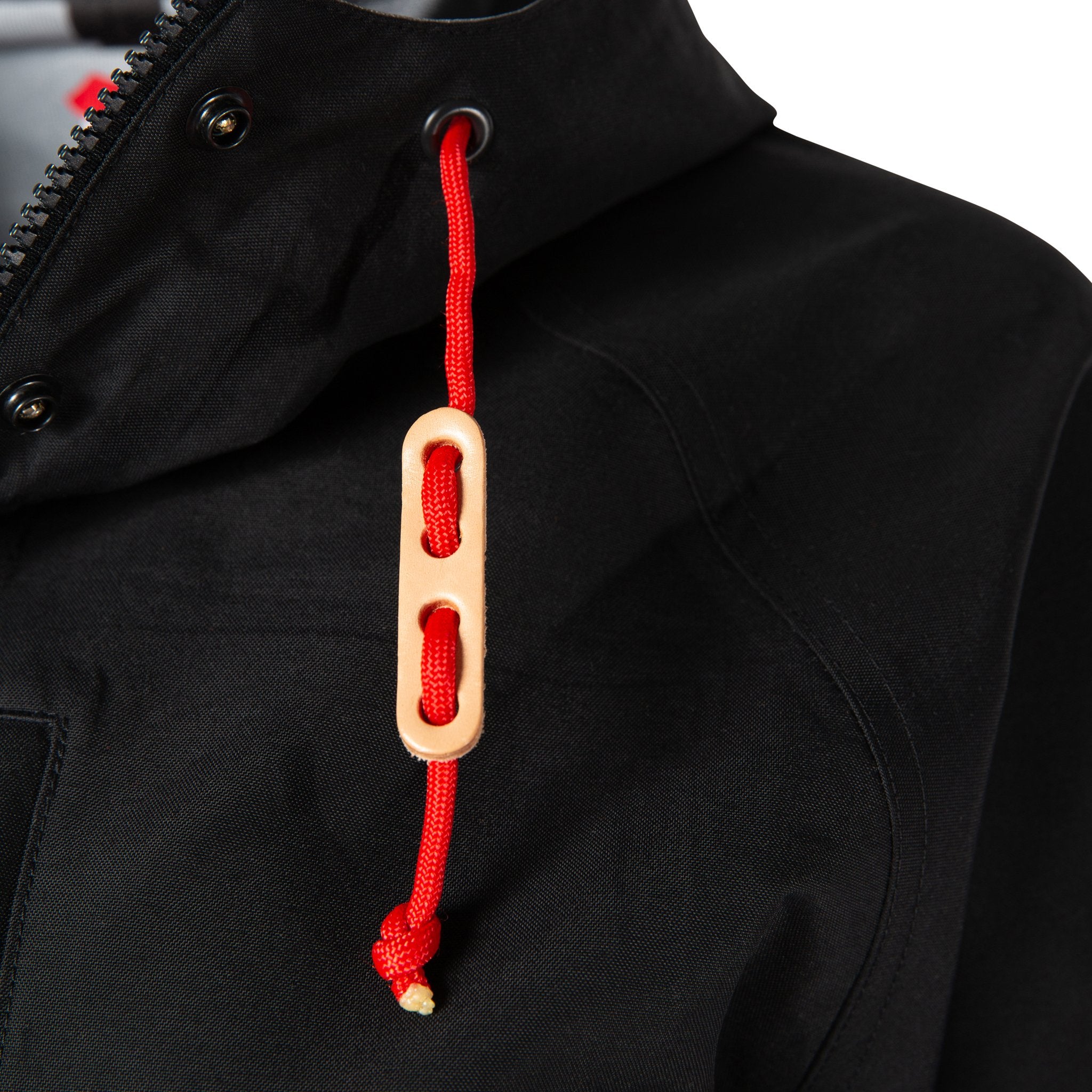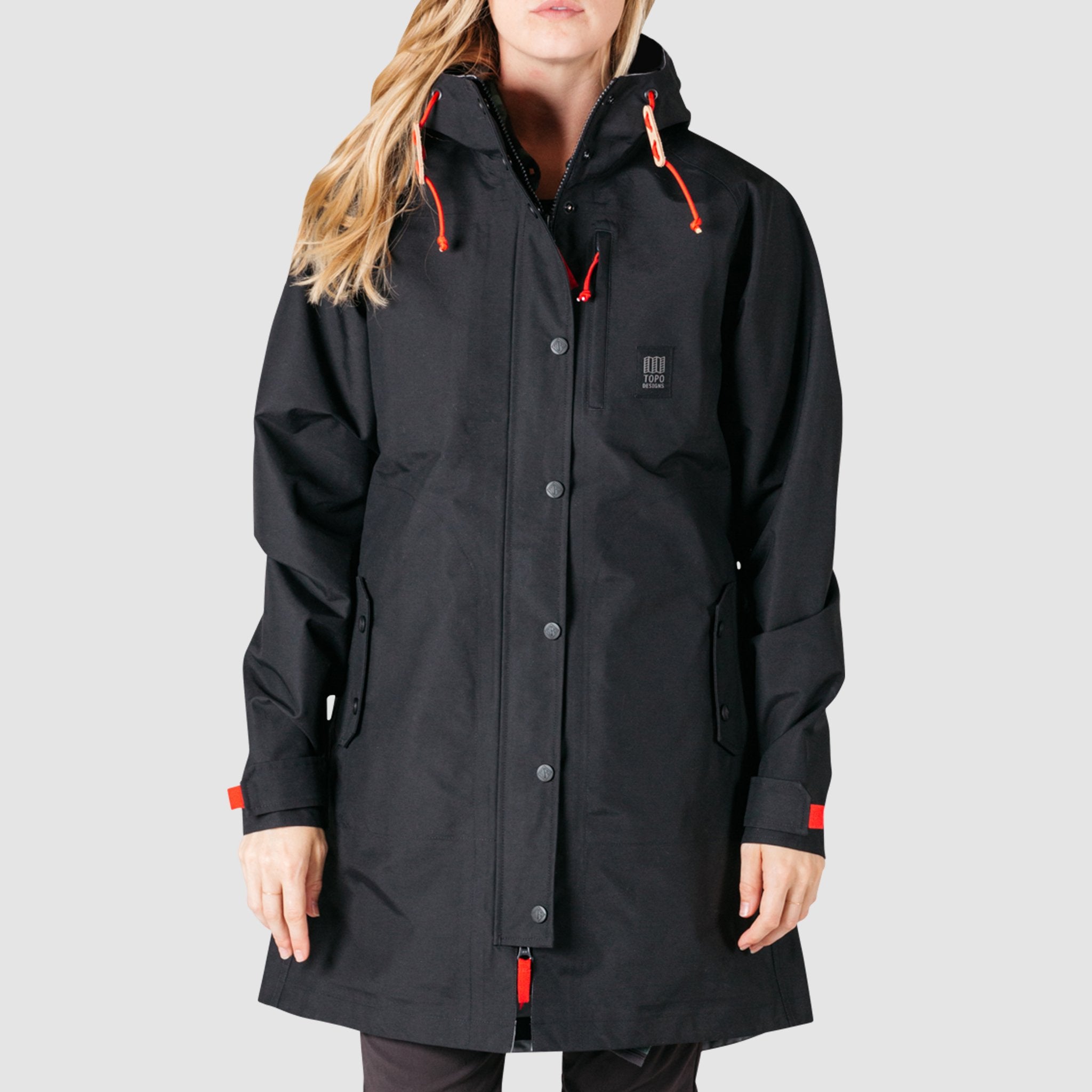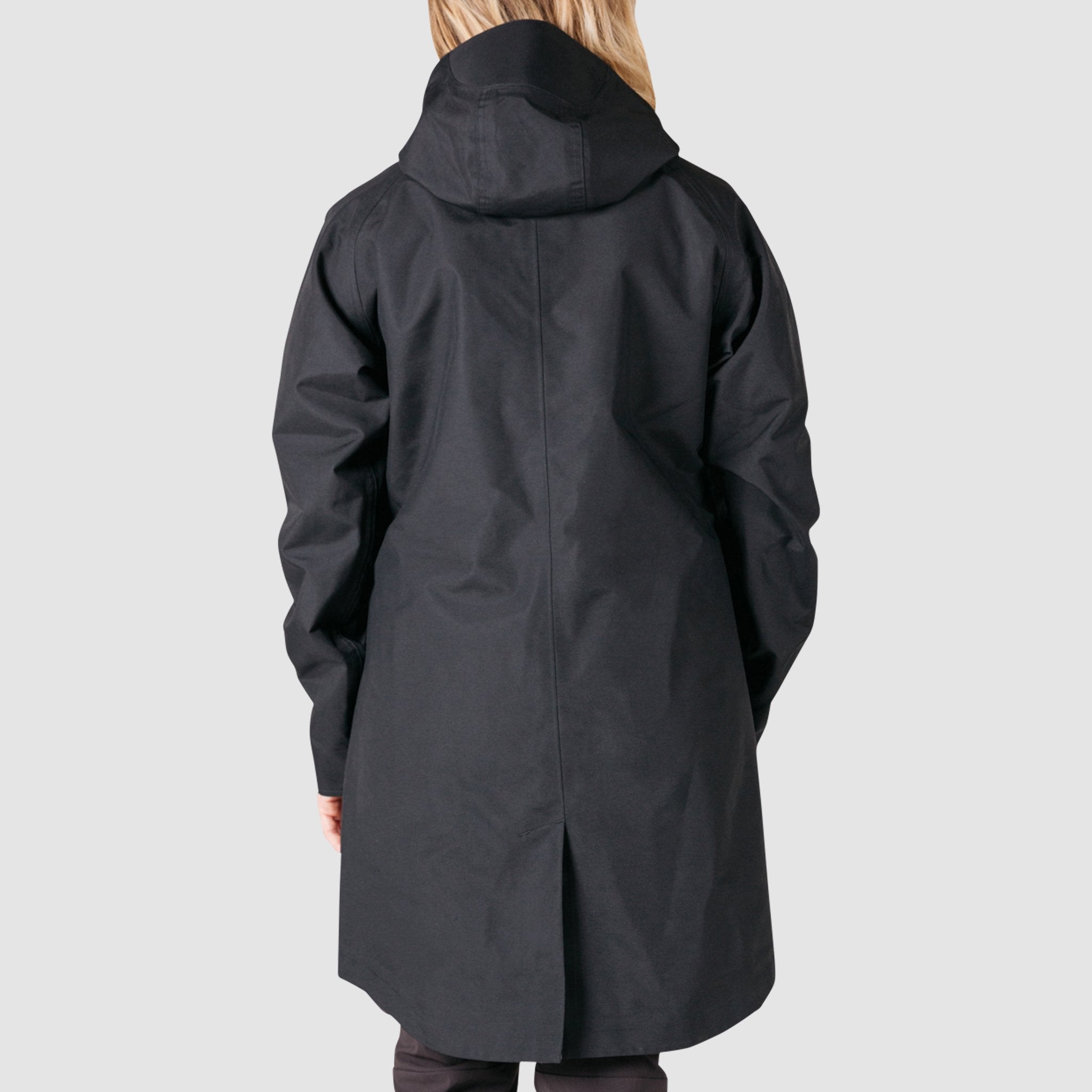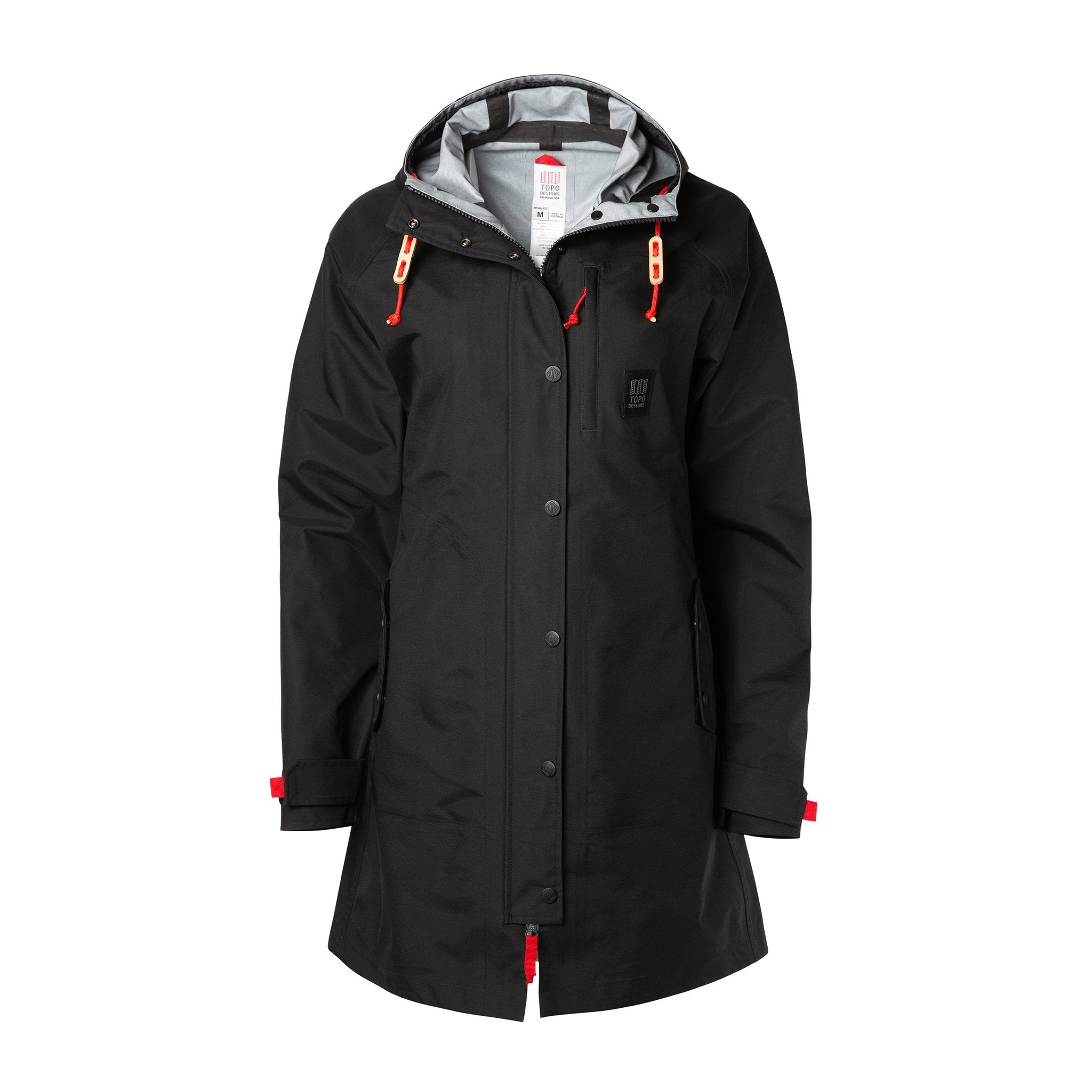 A long silhouette with 3-layer oxford construction and fully-taped seams, with a 10K Waterproof Rating. A structured visor hood with natural leather toggles keeps the hood up and out of your eyes. Multiple hand pockets and a chest pocket keep keys, phone or wallet secure.